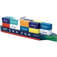 Vilacity Holzcontainerschiff mit kleinen Holzcontainern, die an den Seiten bedruckt sind.