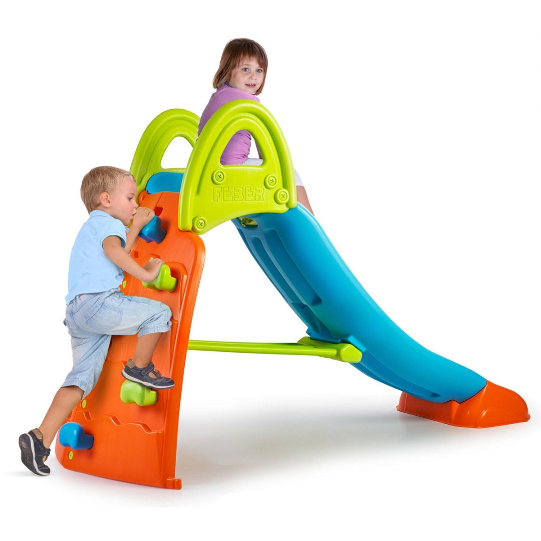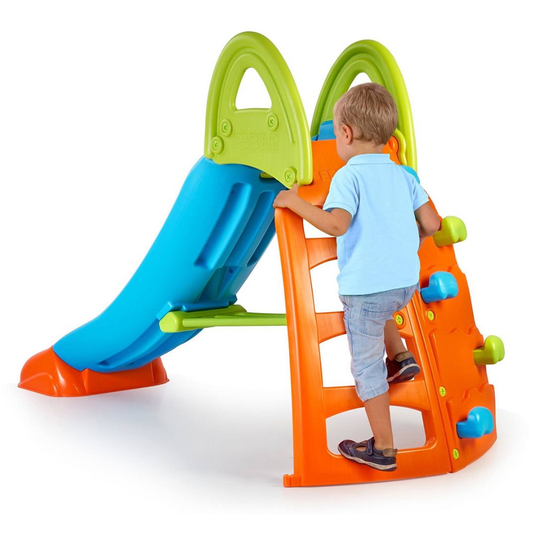 Verwandeln Sie den Garten mit dieser lustigen und herausfordernden Kletterrutsche von Feber in den Lieblingsspielplatz Ihrer Kinder. Hier erhalten Sie nicht nur eine klassische Rutsche, sondern ein komplettes Spielerlebnis mit Rutsche und Kletterwand, das zu aktivem und abwechslungsreichem Spielen einlädt.