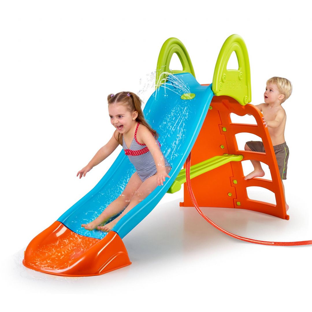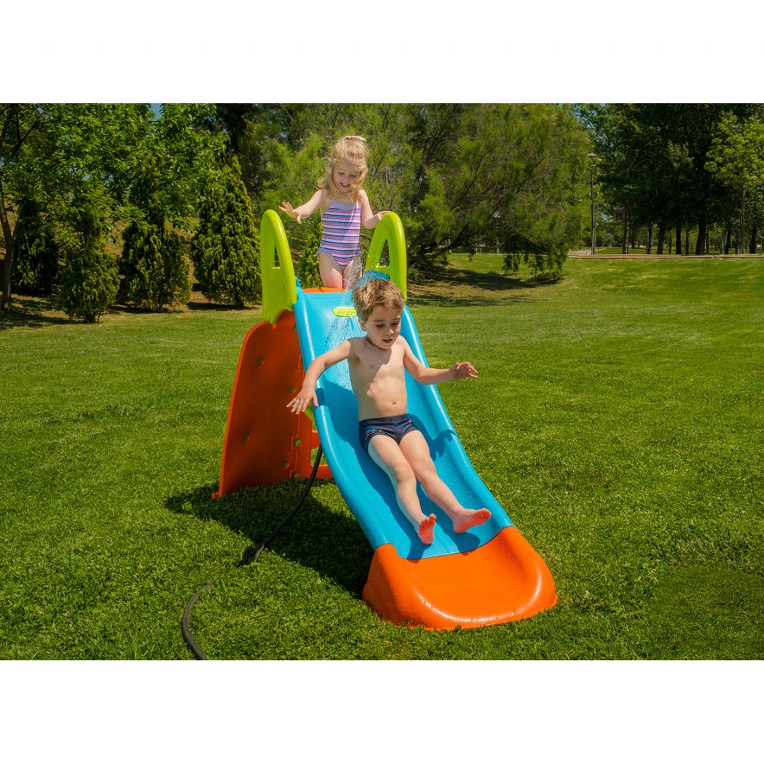 Die Rutsche besteht aus robustem, sonnen- und temperaturbeständigem Kunststoff und kann daher den ganzen Sommer über problemlos draußen stehen bleiben. Gleichzeitig ist sie leicht aufzubauen, sodass der Spielspaß sofort beginnen kann.