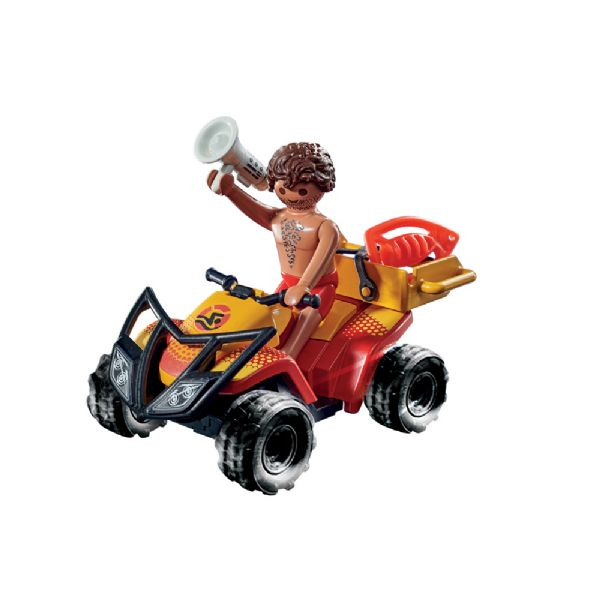 Der fürsorgliche Rettungssanitäter ist immer bereit zu helfen. Zur Ersten Hilfe bei Verletzungen hat er seine Verbandskiste mit Schienen und verschiedenen Verbandmaterialien dabei. Vorsichtig behandelt er die Wunden des verletzten Jungen und legt eine Schiene an sein Bein. Das lustige Dinosaurierpflaster zaubert sofort ein Lächeln auf das Gesicht des jungen Patienten. Es ist eine lustige Überraschung oder Geschenk für kleine Rettungssanitäter. Das Spielzeugset für Kinder ab 4 Jahren enthält zwei PLAYMOBIL-Figuren, ein Scooter, eine Erste-Hilfe-Tasche, Verbandsschienen, einen Helm und weiteres Zubehör. Mit den mitgelieferten Pflastern können Wunden behandelt werden. Die Verletzungen an den Armen und Beinen der Kinderspielfigur sind mit thermosensitiver Farbe gemacht, die durch Reibung verschwindet und wieder sichtbar wird, wenn die Farbe abgekühlt ist. Mundschutz, Helm und Badesandalen können abgenommen werden. Die PLAYMOBIL City Life-Serie enthält moderne Fahrzeuge und realistische Charaktere, mit denen Kinder wichtige Fähigkeiten entwickeln können und sich in spannende Rollenspiele vertiefen können.