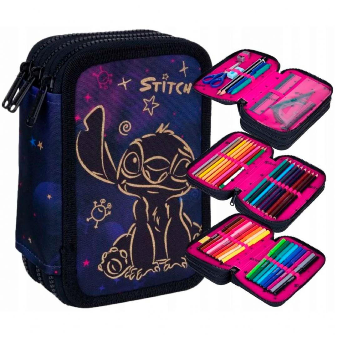 Praktisches und stylisches Federmäppchen mit dem beliebten Stitch-Motiv von Disney. Dieses Federmäppchen verfügt über drei separate Fächer und ist bereits mit Schreib- und Zeichenutensilien befüllt – perfekt für die Schule.