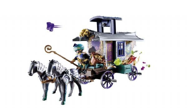 Mit Violet Vale - Dämonenpatrouille von Playmobil können Kinder im Alter von 4 bis 10 Jahren in eine Fantasiewelt voller Ritter und Magier eintauchen, in der gegen böse Kräfte gekämpft wird. Zwei Magier, Flamathor und Demonthella, sind auf der Jagd nach bösen Dämonen, die Violet Vale heimsuchen, und benötigen ein Auto mit zwei defensiven Armbrüsten, um die Dämonen zu bekämpfen. Der eine Magier steuert das Auto, während der andere die Armbrüste bedient.